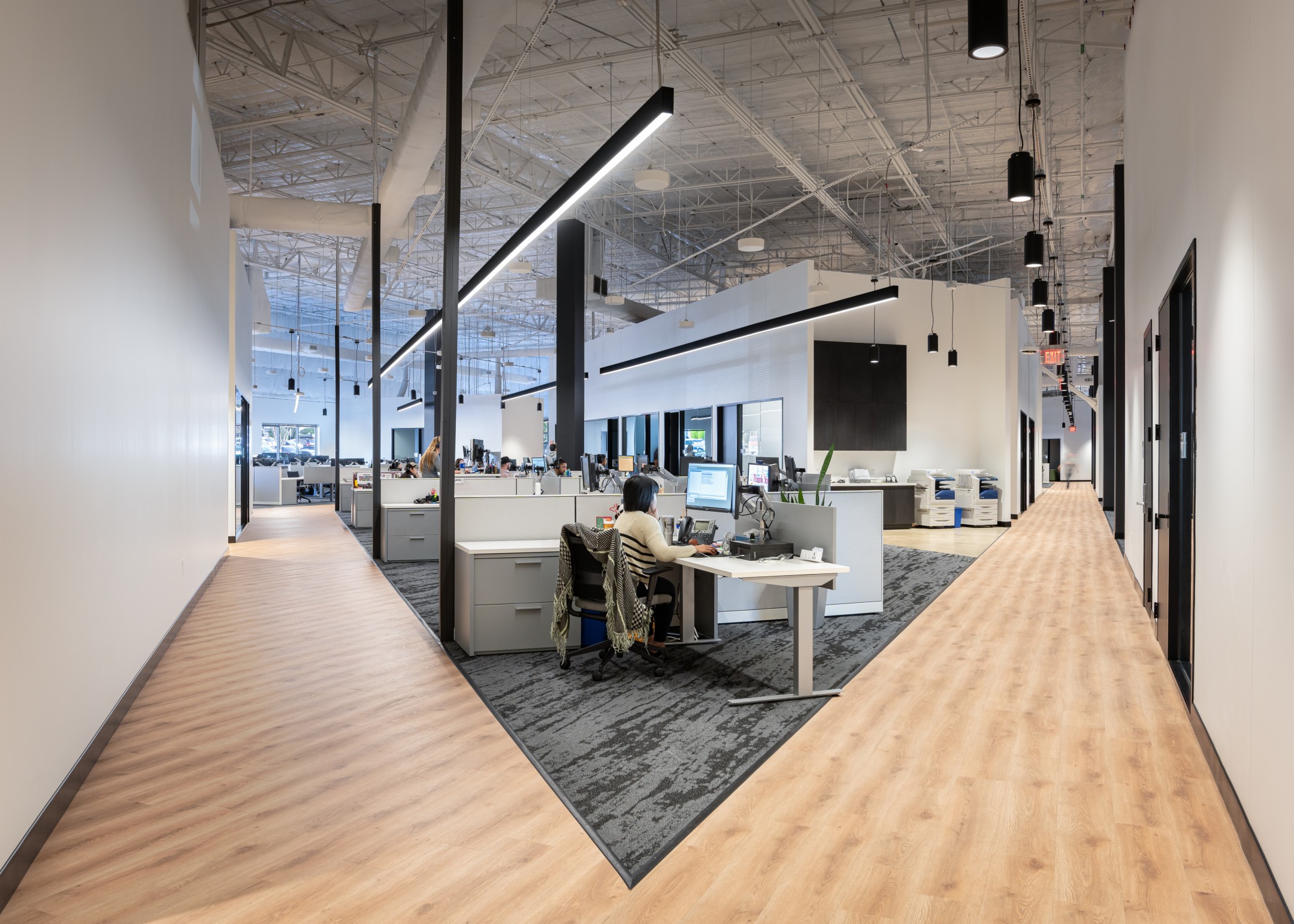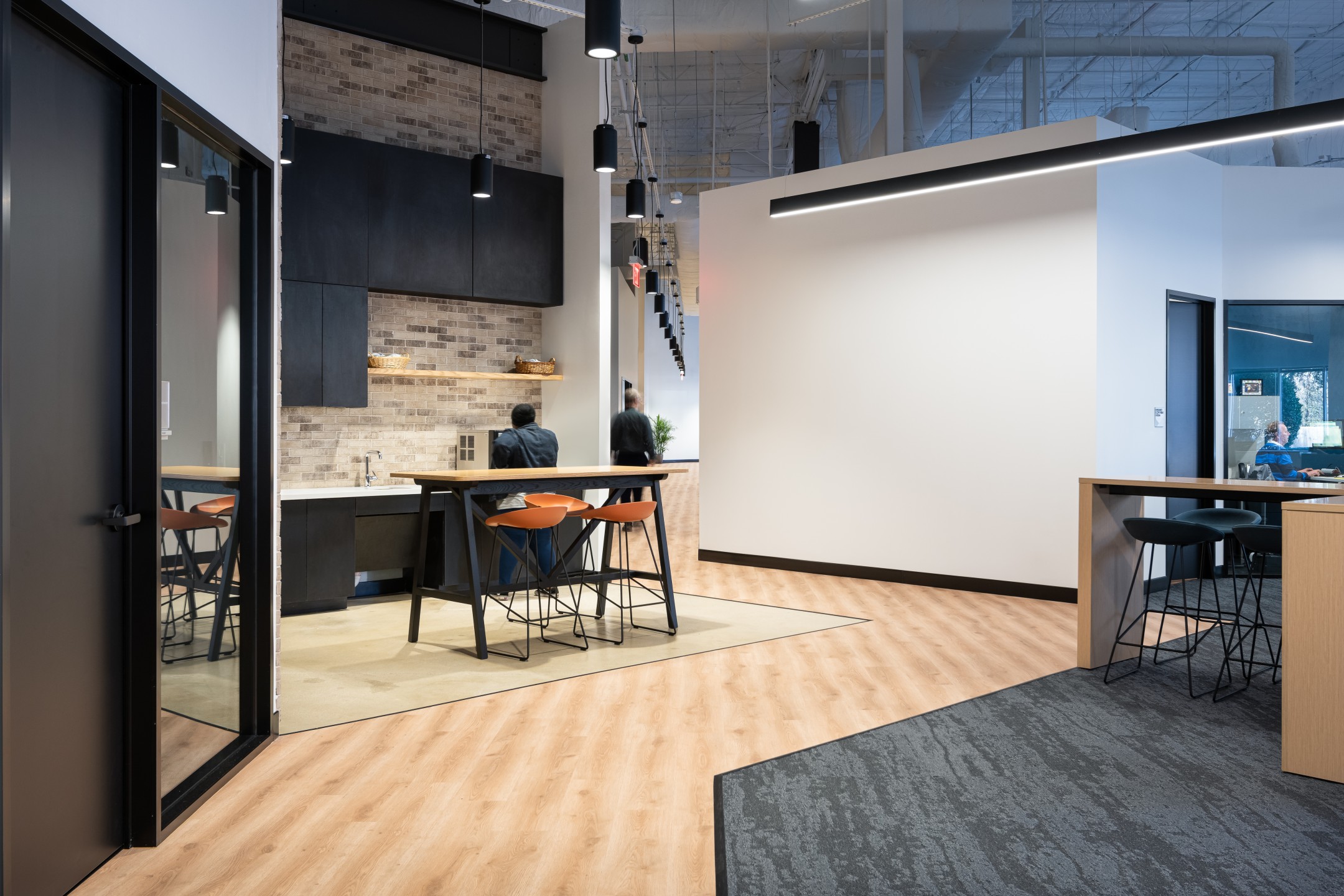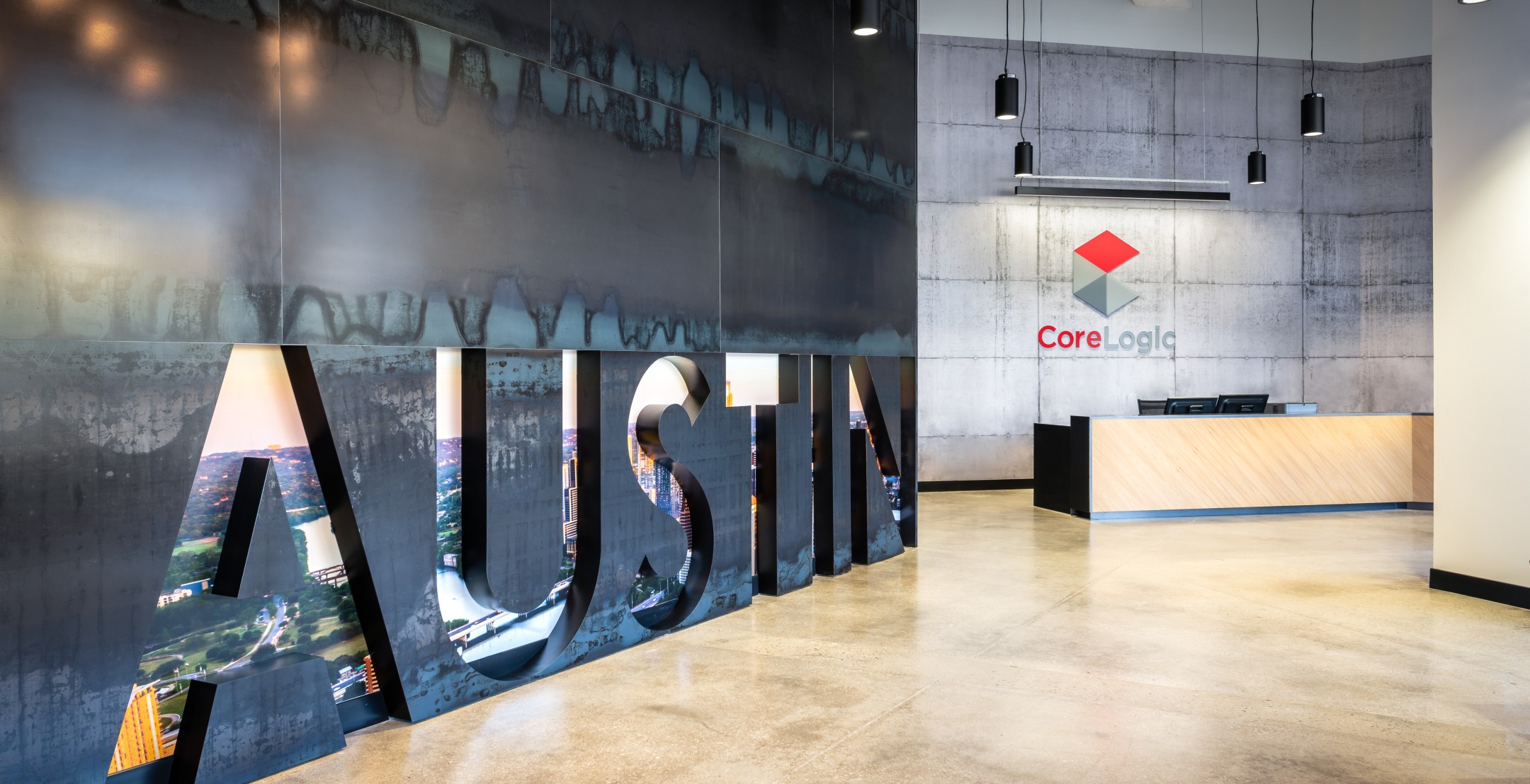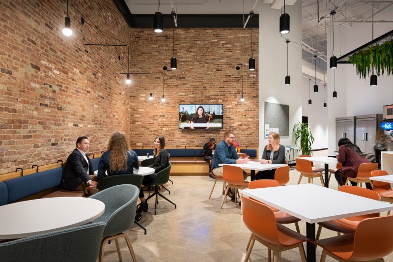 After completion of their Dallas Headquarters, CoreLogic engaged BOKA Powell to provide interior design services for several of their offices throughout the United States, from Austin Texas to, Greensboro, North Carolina to Milwaukee, Wisconsin. Their Austin office is a clever adaptive re-use of an existing warehouse allowed for a unique aesthetic with 25 foot exposed ceilings. By arranging walls of various heights, acoustical separation zones were created, giving way to a centralized breakroom all while maintaining an effective space plan that allowed for natural light to penetrate throughout. This new office environment provides access to several lounge areas, collaboration zones and an outdoor terrace.