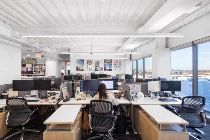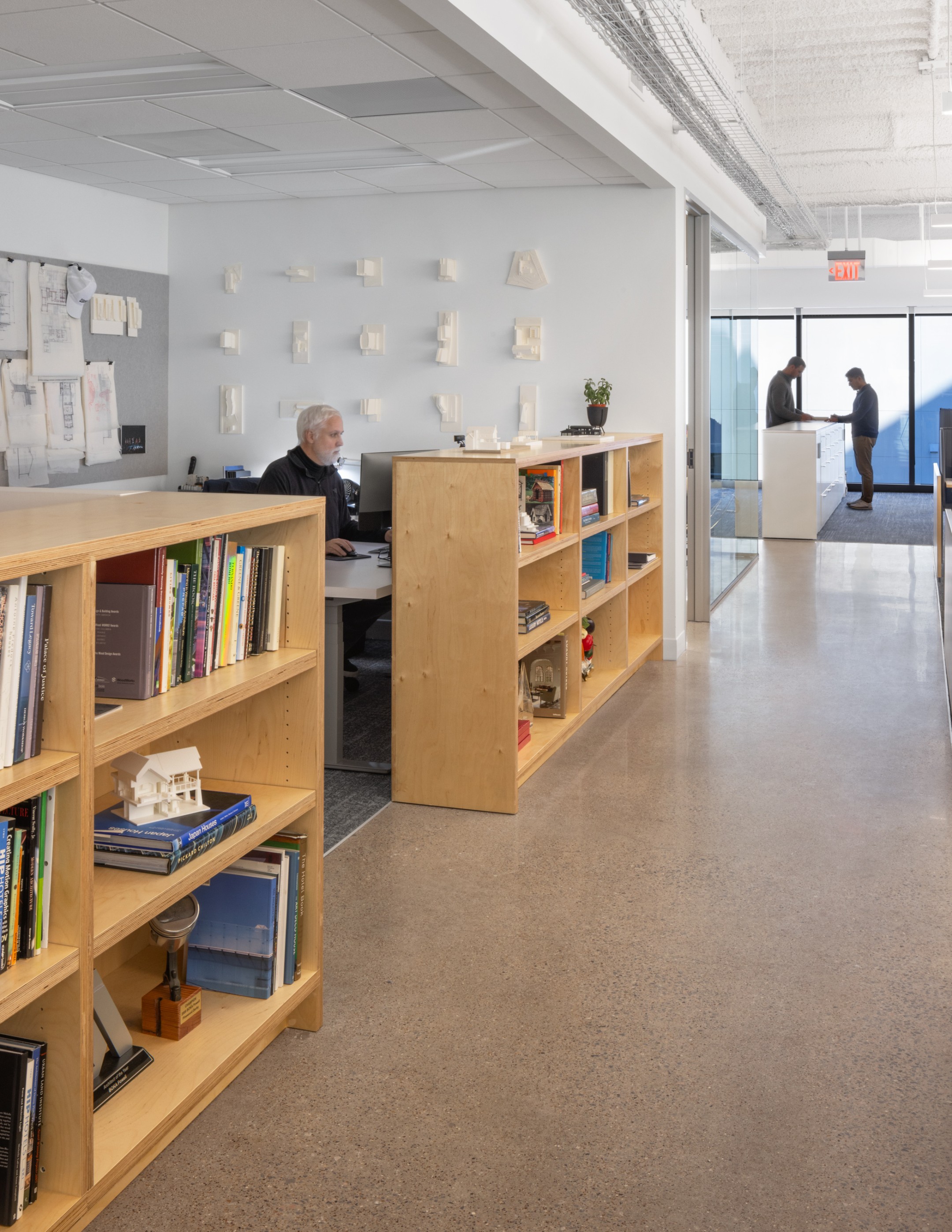 An open office layout fosters communication and transparency, with private offices strategically positioned to maximize natural light for all employees. Pin-up areas inspire creativity and idea-sharing, enhancing project development. Integration of modern technology infrastructure facilitates seamless communication and project management, reflecting our innovative approach.
