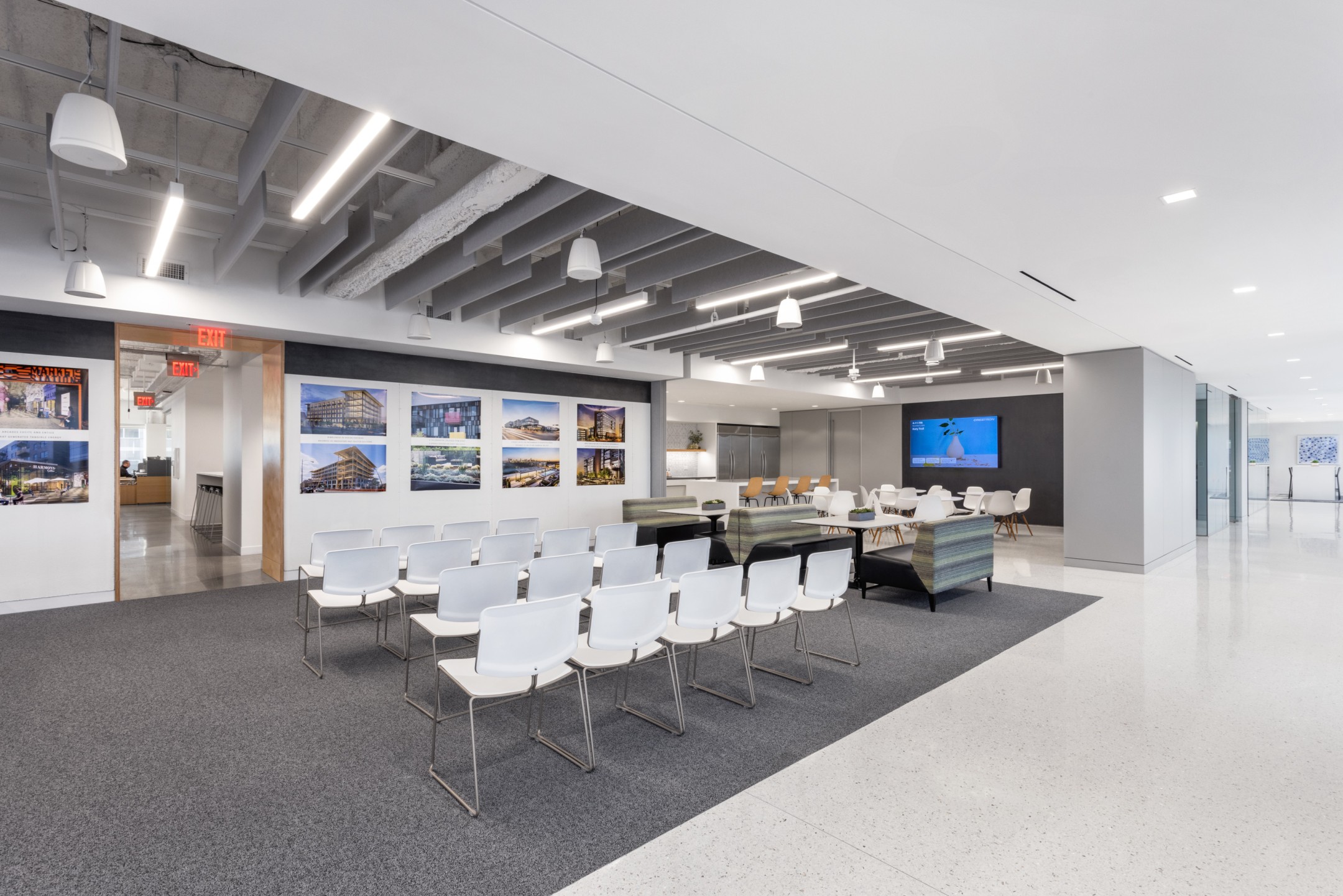 BOKA Powell's new Dallas office at 8080 Park Lane is a dynamic 19,800 square foot workspace that seamlessly blends sustainability, collaboration, and employee well-being. Our adaptive reuse strategy preserves existing spaces while expanding key areas like conference rooms and break rooms while maximizing cost-effectiveness. Flexibility is paramount, with numerous huddle and meeting spaces accommodating diverse team sizes and project needs.