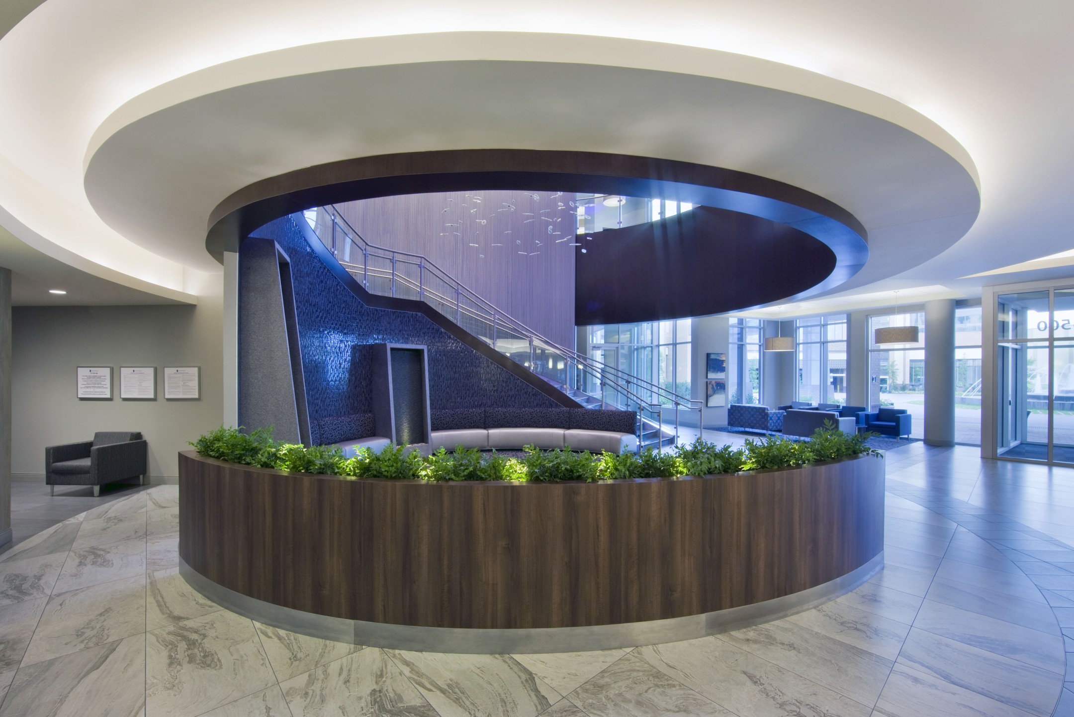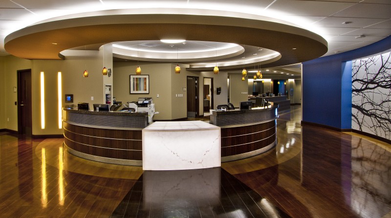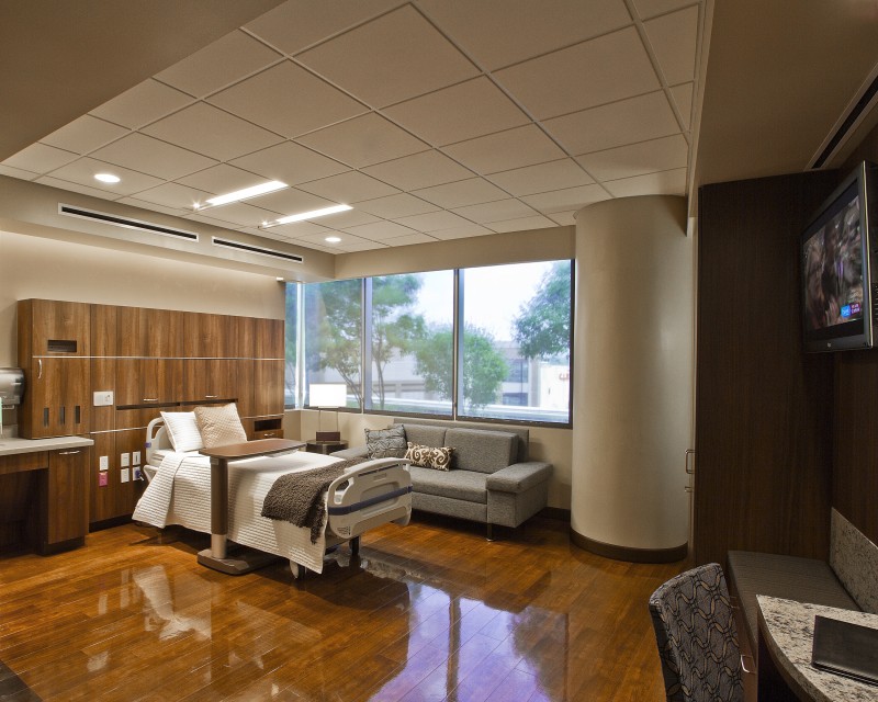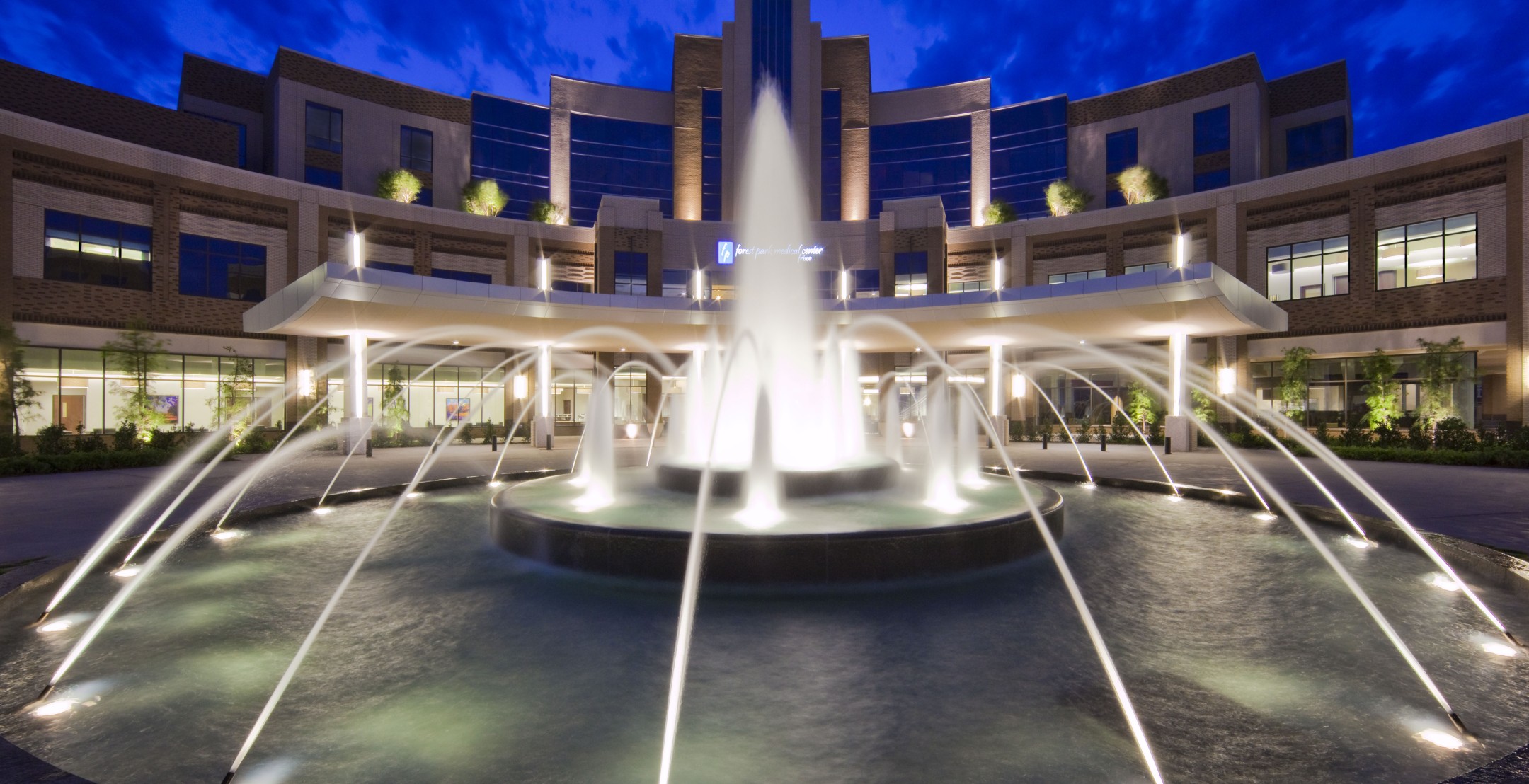 Strategically located in the burgeoning Frisco Square development, the Forest Park Medical Center in Frisco, Texas embodies a new standard in healthcare delivery. The four-story, 141,500 square-foot hospital features 30 luxurious patient rooms, 10 ICU patient rooms, and 14 VIP suites with attached sitting areas for family and guests. Patient rooms serve 12 operating rooms with ICU services and two procedure rooms. An upscale dietary unit offers fresh, healthful fare for patients, guests, and staff. Each aspect of the facility’s design, from the motor court and lobbies to the lighting and patient room finishes, has been designed to stimulate the senses in a “five-star, hospitality-enriched” environment. The exterior of the hospital celebrates the drama of the art deco period with eclectic and contemporary styling that befits Frisco Square’s urban character. The project includes an additional 57,000 square feet of medical office space on two floors and more than 34,000 square feet of restaurant and retail space enhanced by pedestrian-scaled arcades and al fresco dining options. Integrated into the two-building complex is a 600-vehicle parking structure that services the hospital, the MOB, and the Frisco Square development. Forest Park Medical Center Frisco delights and inspires by exceeding every expectation through thoughtful design that supports an extraordinary level of comfort and care in a state-of-the-art medical facility.