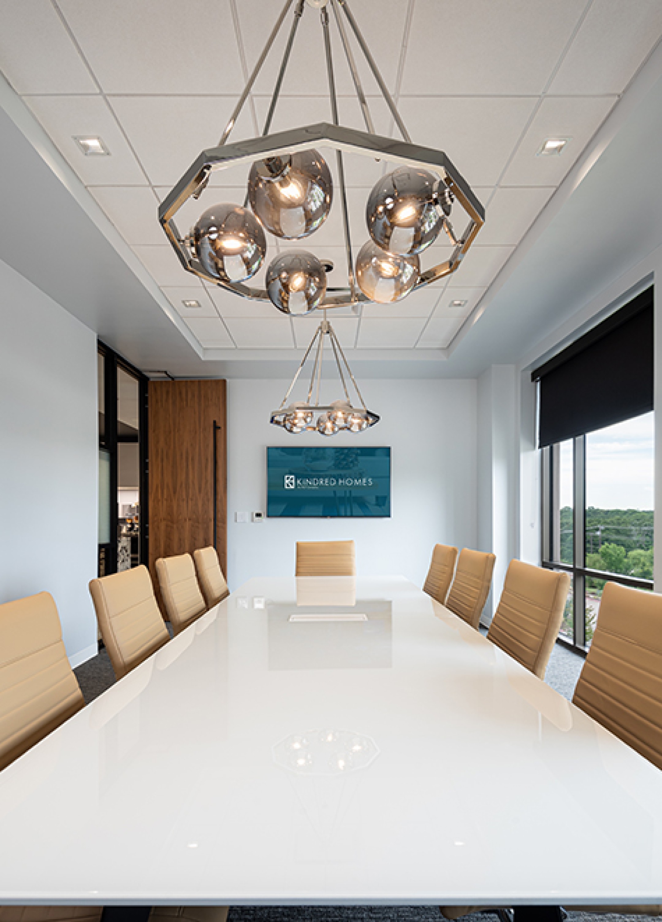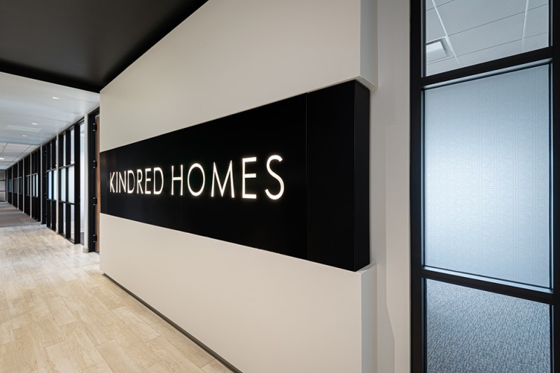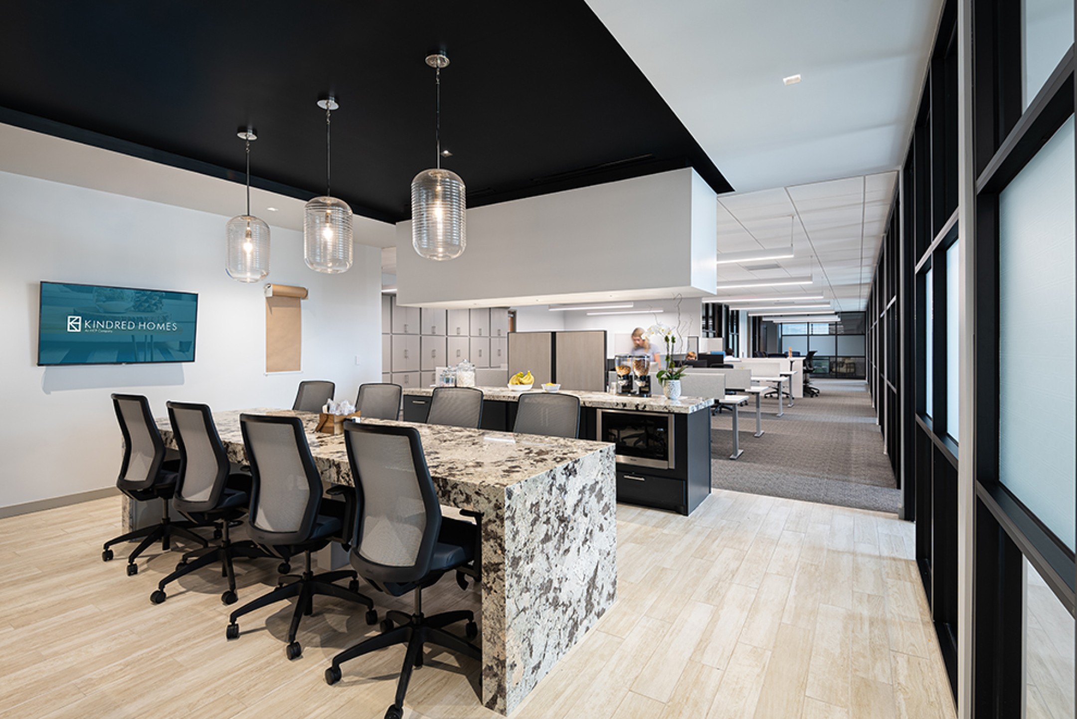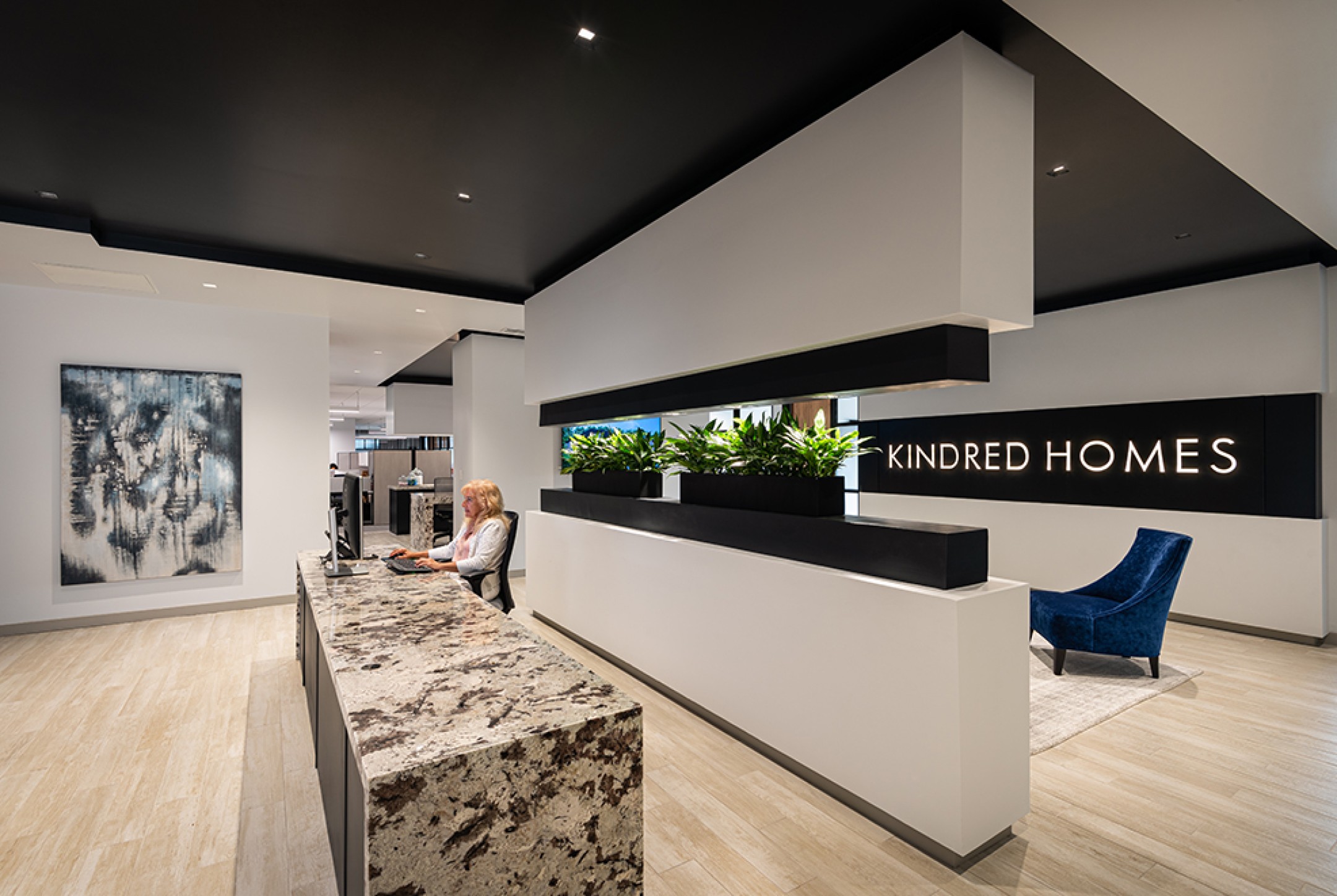 Kindred Homes wanted the culture that was discovered through the branding process to be expressed in their headquarters. The client wanted it to have a home feel similar to walking into one of their homes and a comfortable and equipped environment for their employees. Incorporating collaborative spaces and break areas with technology and the appropriate amenities.