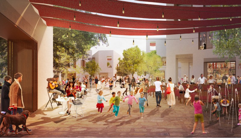 The offices, designed by BOKA Powell, are tied together by an outdoor walkway that capitalize on Austin’s climate. The formation of paseos and plazas showcase the existing mature pecan trees that reside on the site and give tenants and visitors a unique urban space to dine, shop, and enjoy live music.