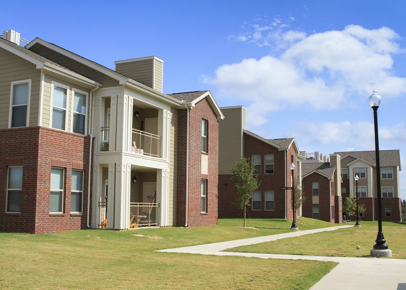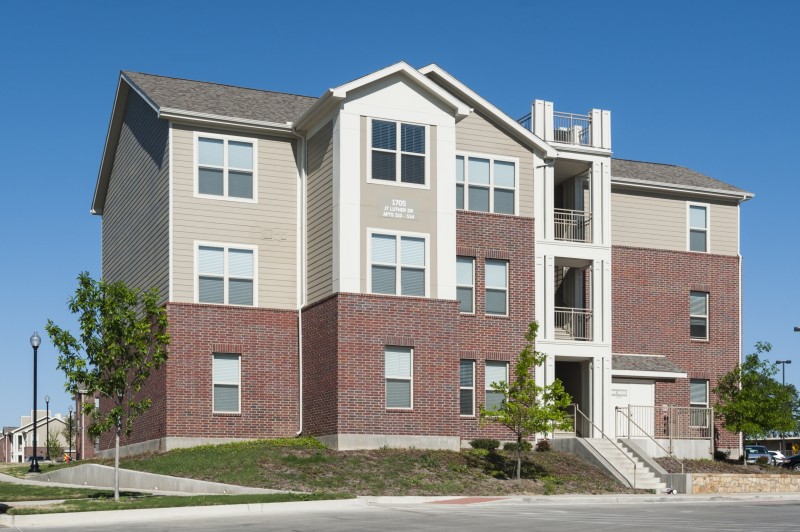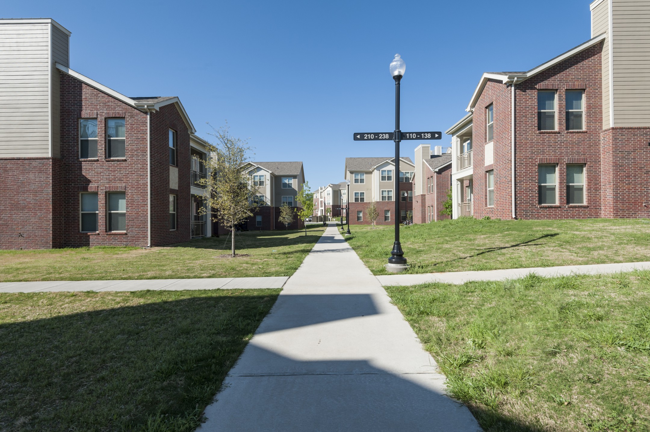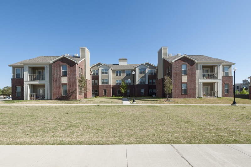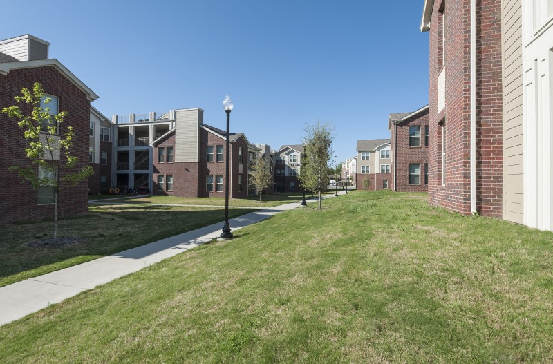 In all, the development includes 216 two-bedroom units and 36 three-bedroom units. The full-service apartments each include a kitchen, washer and dryer, and individual entrances to create true apartment-style housing for the next generation of the expanding student population.
