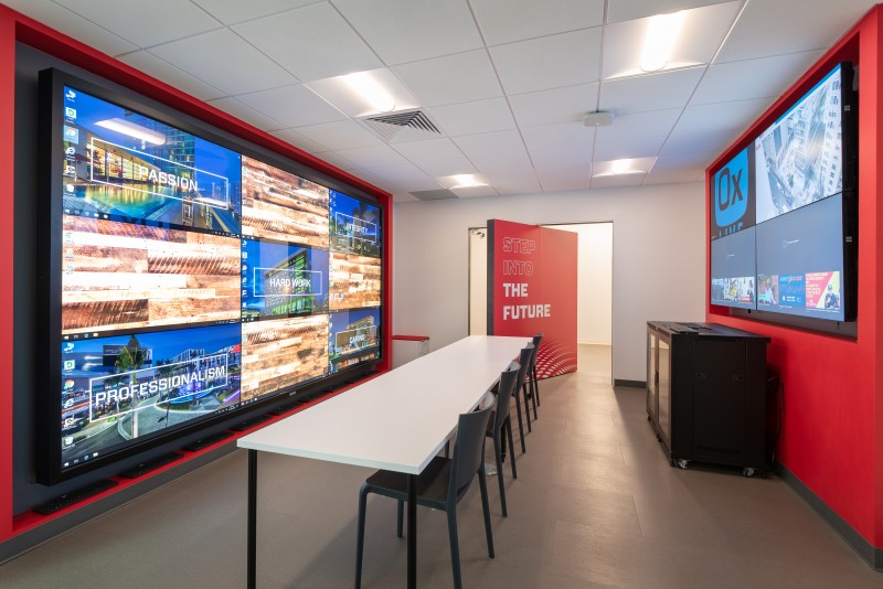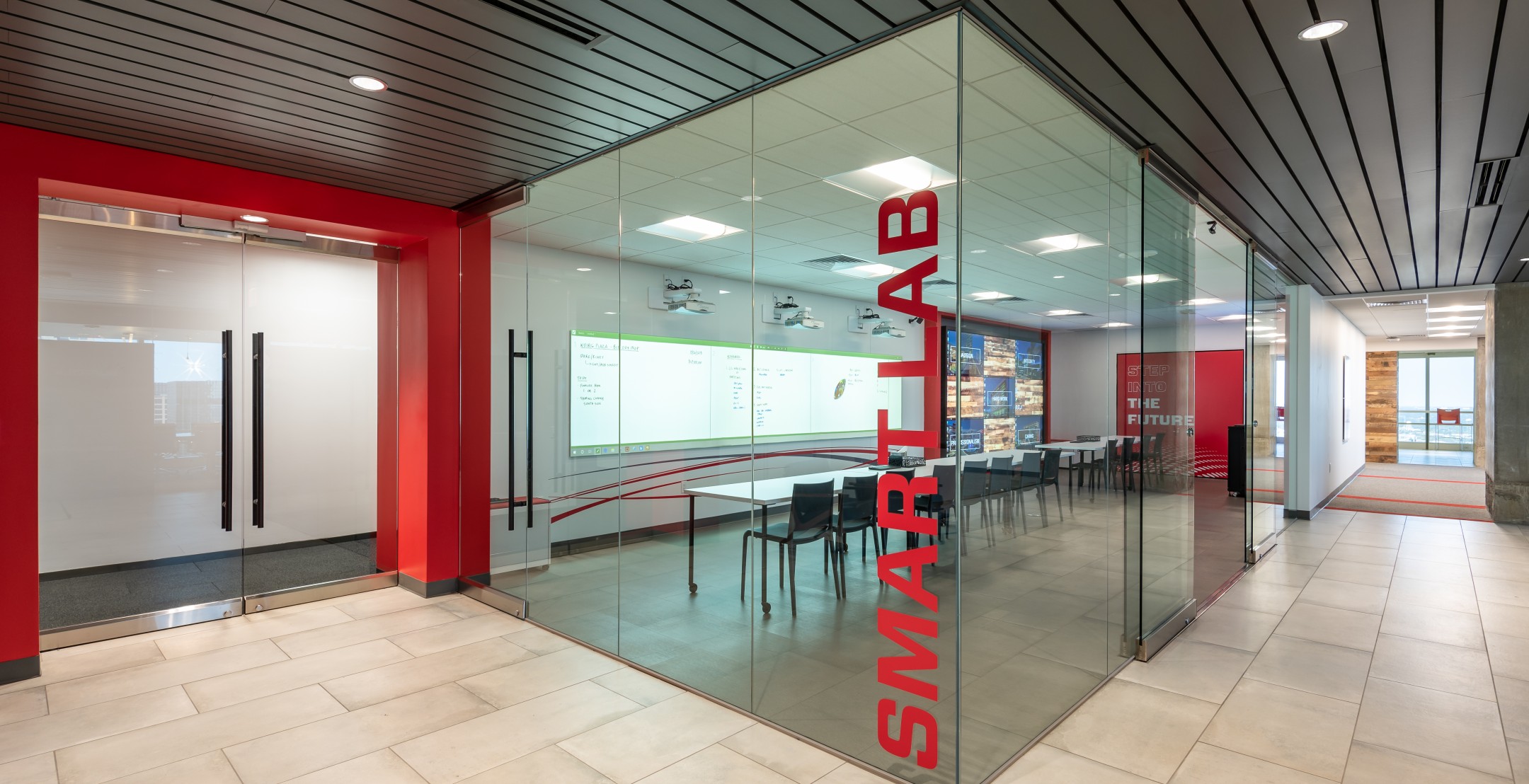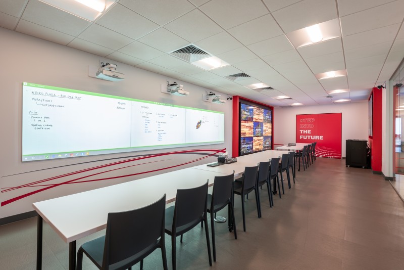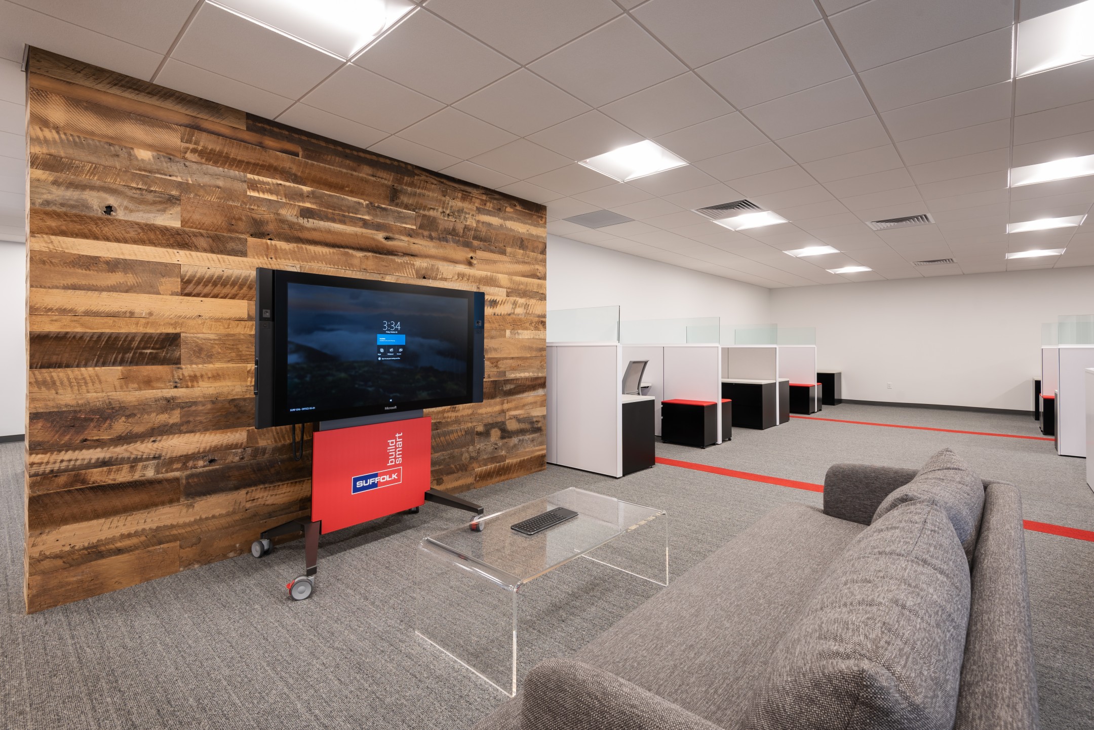 Suffolk Construction’s Dallas office places technology front and center, showcasing the firm’s commitment to cutting-edge pre-construction and construction management processes from the moment clients and guests enter the space.