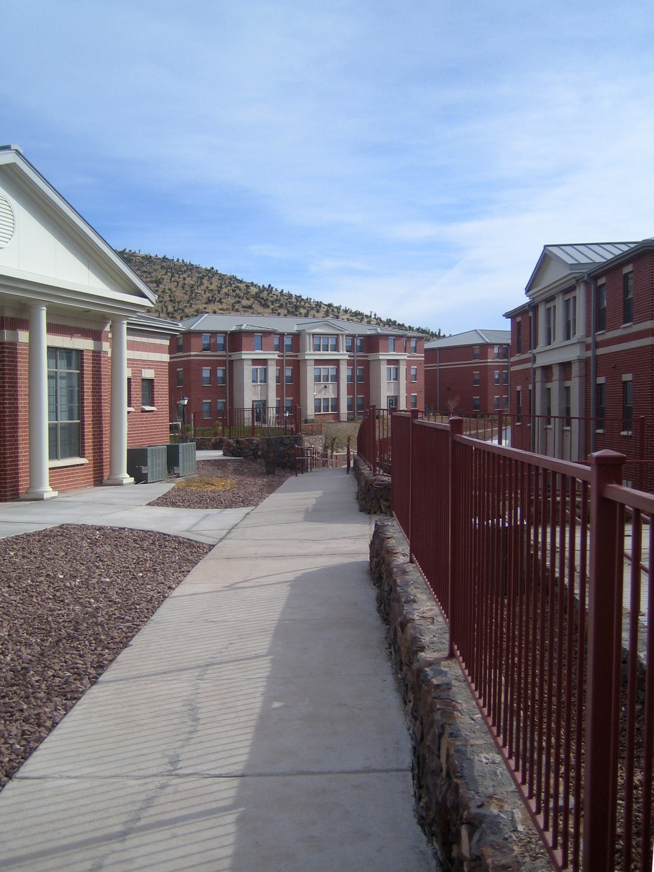The new Residence Hall designed to be a living learning environment, provides suite housing for 500 students, anxilliary functions to complete the functional mission including: meeting rooms, classrooms, study room, television/social rooms, laundry and food service facilities. The complex is shaped to respond to the masterplan while creating two courtyards. One public and one contemplative.