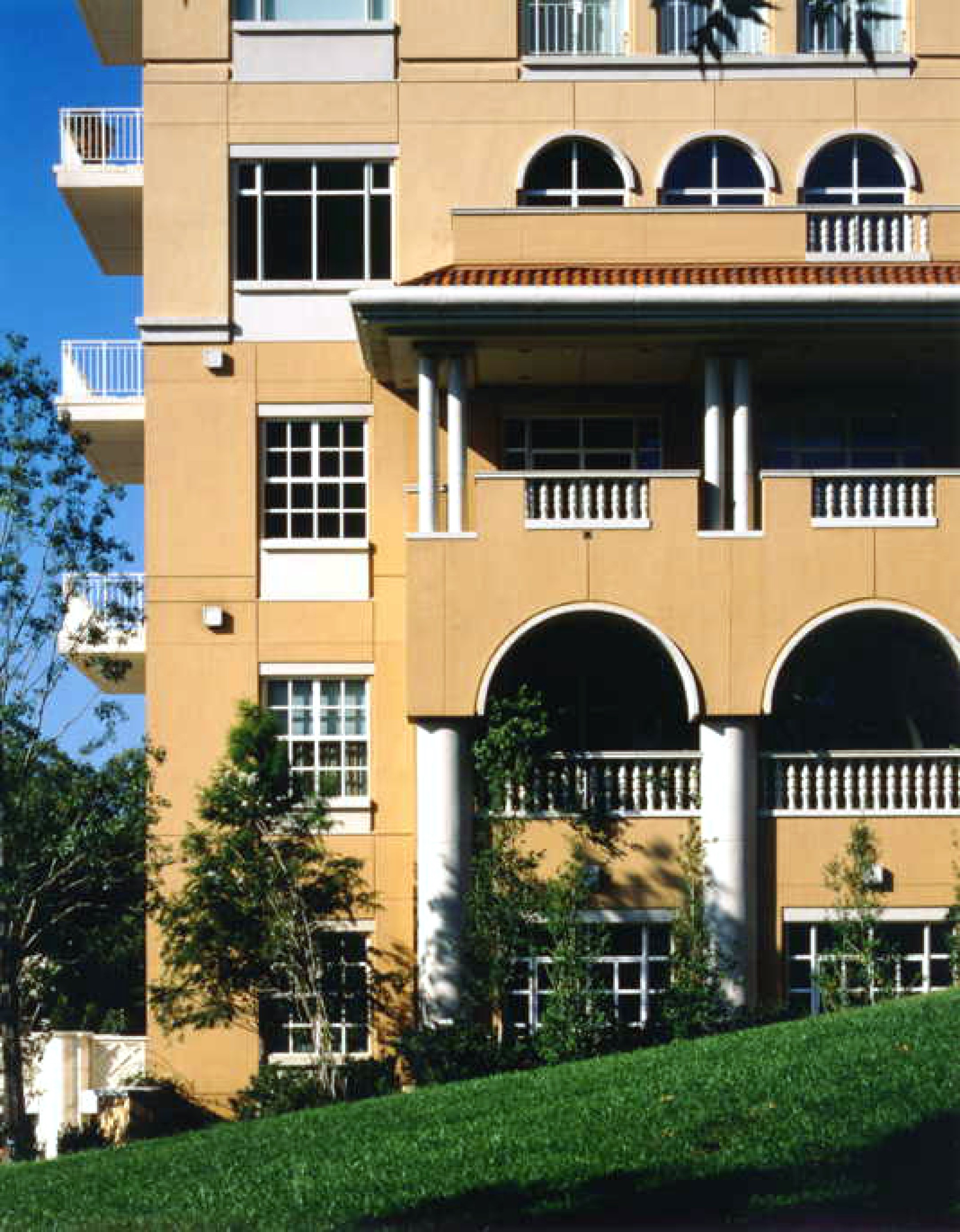 The building incorporates two levels of secured below grade parking, with a valet station and extensive security monitoring for ease of accessibility and safety. A connecting link to the hotel and restaurant provides direct access to services from those facilities, and incorporates a health club and beauty salon. Within the tower itself, an innovative 16” raised floor system is utilized throughout for the routing of all mechanical, electrical and plumbing systems within each unit, without disruption to units above or below. Kitchen and bath facilities can be located virtually anywhere on a floor, allowing for maximum planning flexibility. A moisture detection system is incorporated below all raised floor areas to allow for the quick location and repair of leaks.