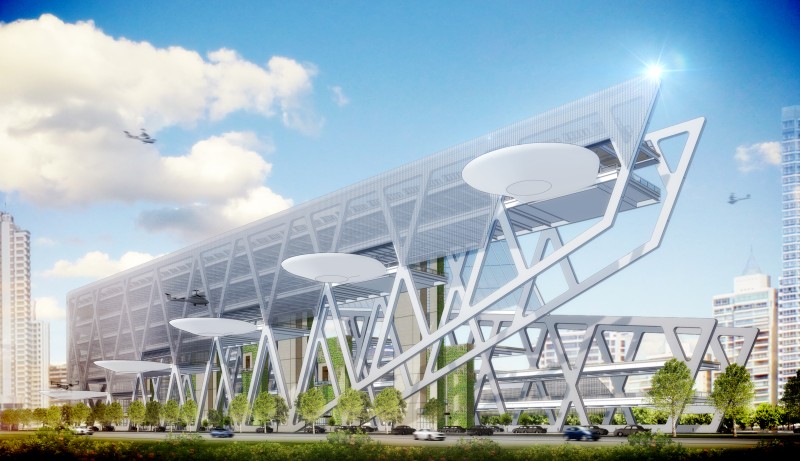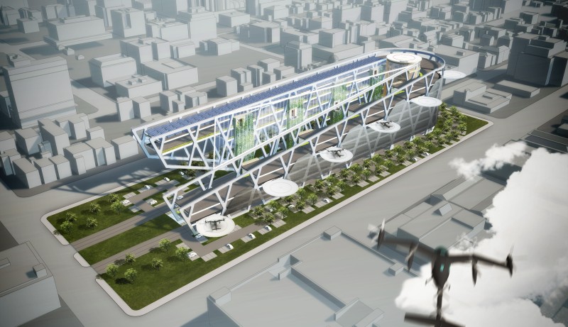 As part of the Uber Elevate Summit 2018 in Los Angeles, BOKA Powell presents Skyport, a vision for an urban airport structure supporting Uber’s upcoming electric VTOL (vertical take-off and landing) aircraft network. This critical piece of infrastructure is the next step in bringing “flying cars” to the public, spurred by advancements in VTOL aircraft design and Uber’s plans for on-demand aviation to connect to its ground transportation system.