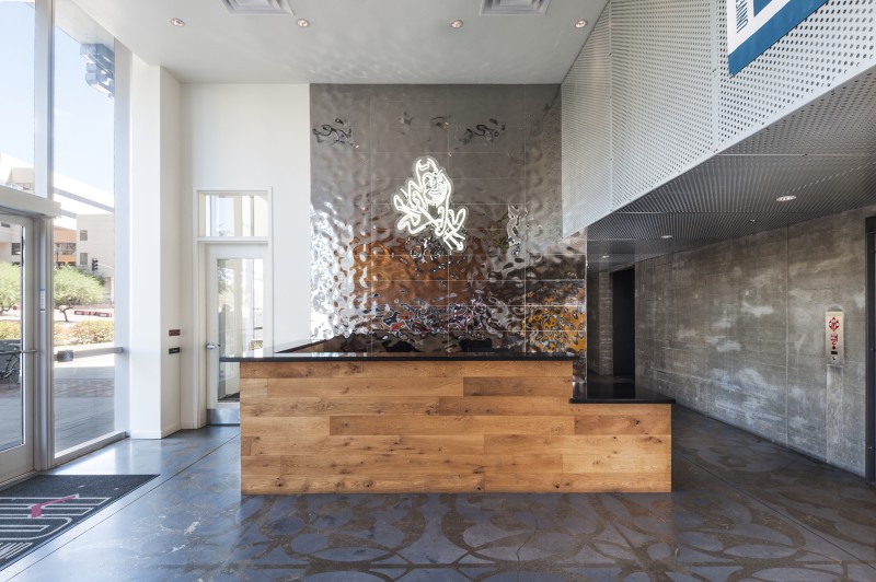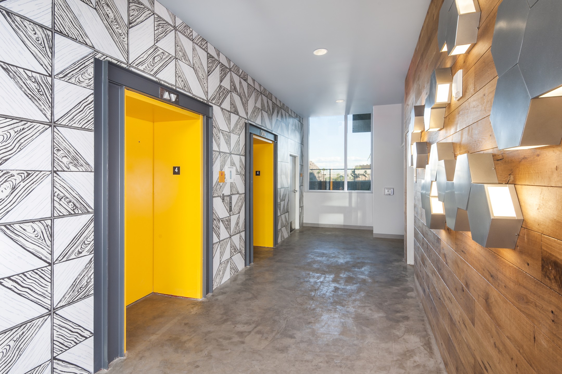 BOKA Powell partnered with Sixthriver Architects on the building’s interiors, emphasizing bold geometric motifs and merging the modern character of the project’s architecture with a refined, yet youthful interior.