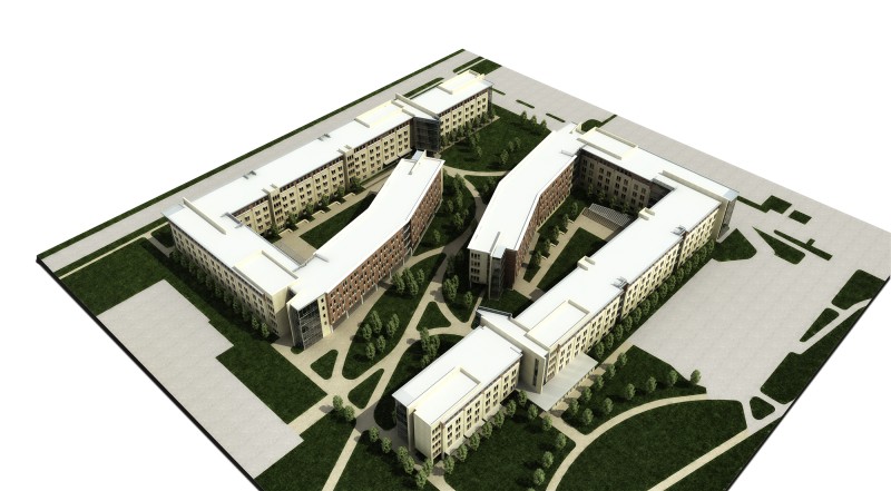 Administrative offices, classroom space, computer labs, multifunction space, and a convenience store are included at the ground level and are organized to encourage use by all students, both those residing in the complex and in nearby housing facilities.