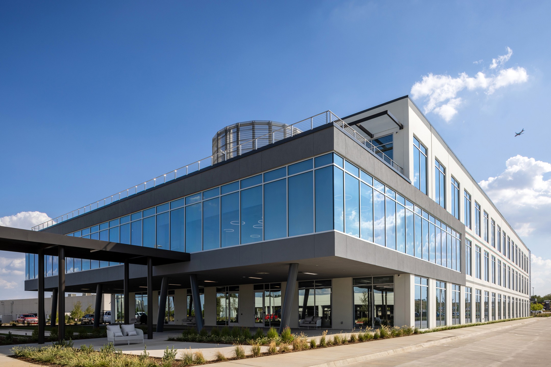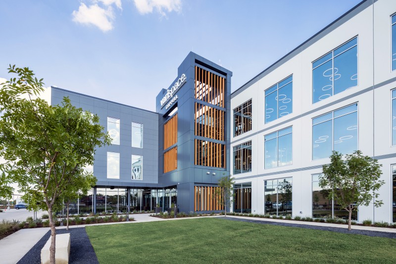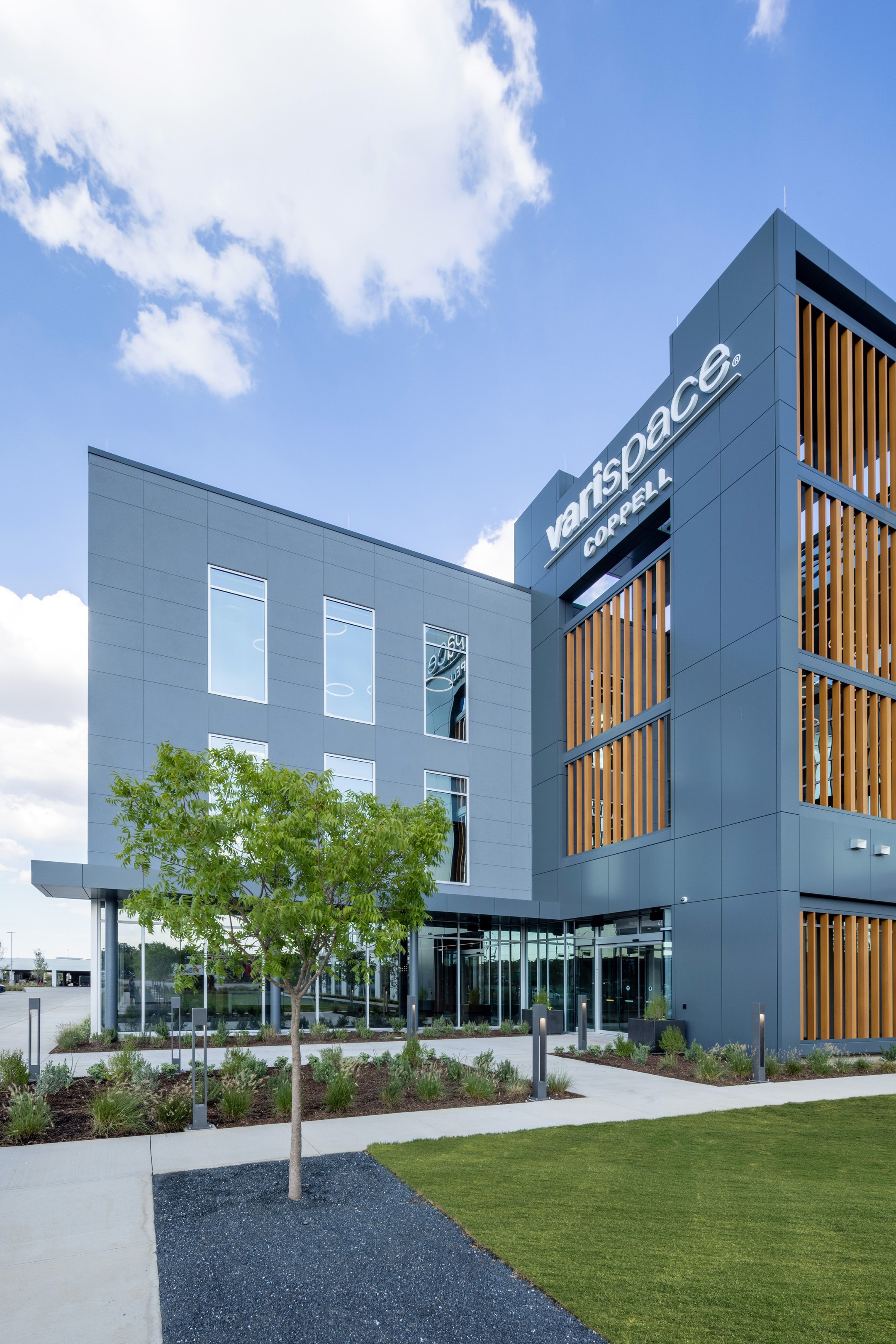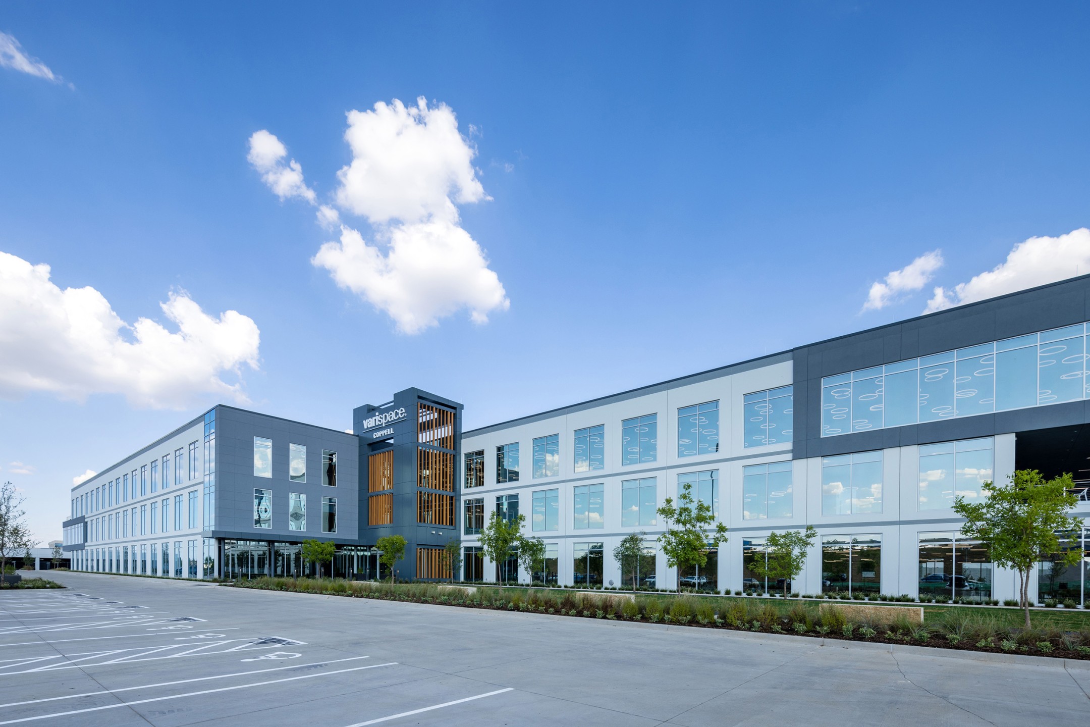 VariSpace in Coppell, Texas, is a 180,000 SF, three-level, tilt-up office designed to be their new Headquarters. The architecture reflects the company’s disruptive reputation, featuring bold massing shifts. The lobby introduces a double-height, z-shaped space and a 60,000 SF floor plate. The second level extends 30-feet, creating three large outdoor areas. VariSpace offers a dynamic a innovative workspace for its employees.
