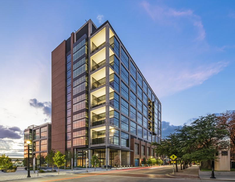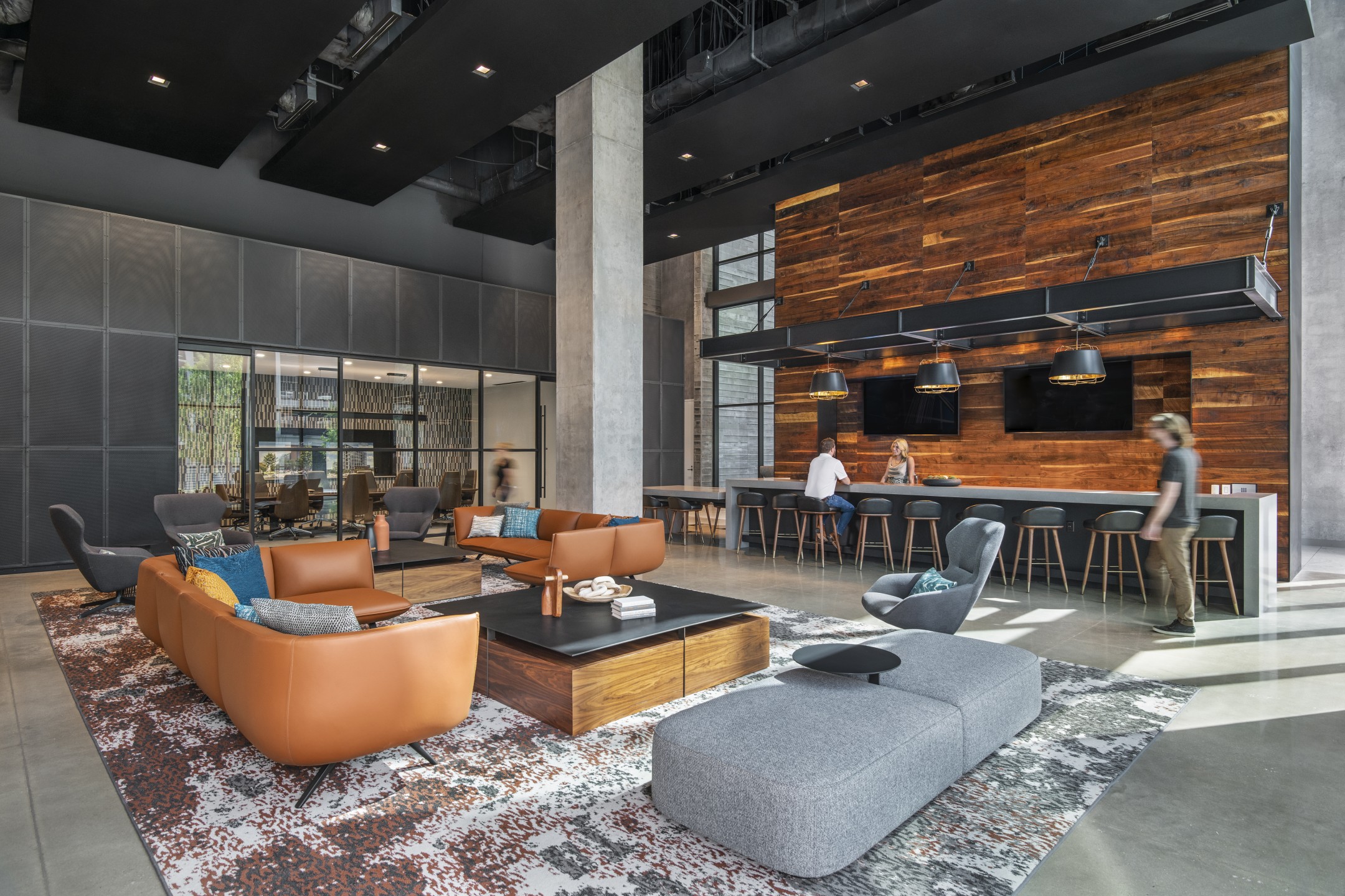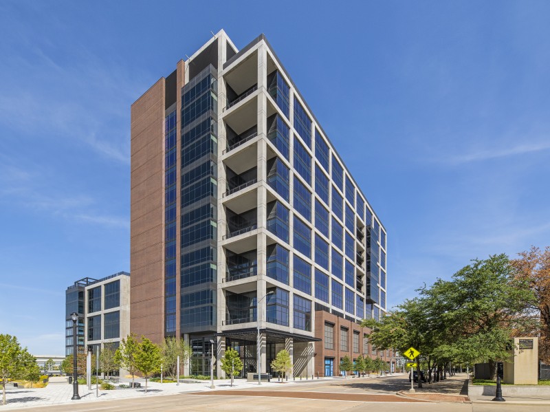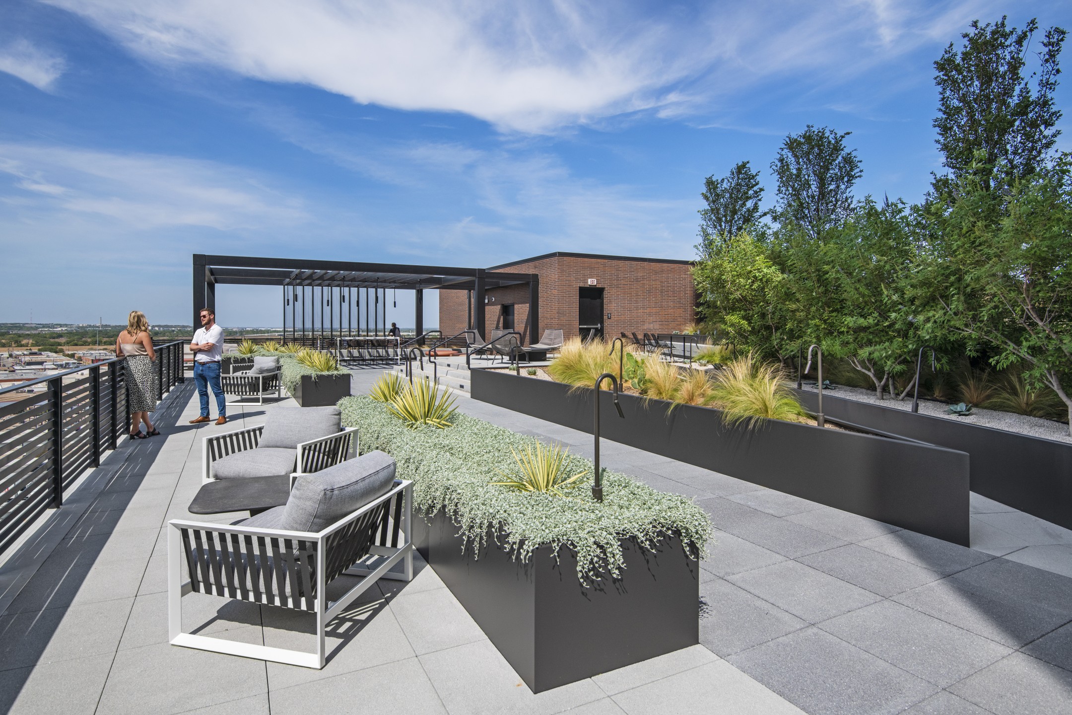 Located next to the DART light rail station and a one-acre park, the brick, concrete, and steel building is directly across the street from the American Airlines Center Arena. Victory Commons features large floor plates with a unique side-core design that allow tenants to incorporate flexible workplace design strategies. Balconies offer views of Victory Park, Uptown Dallas, and the Central Business District. A lush roof terrace overlooks Victory Park and the Design District, while ground-floor retail and outdoor seating invite users to enjoy lively shops and restaurants.